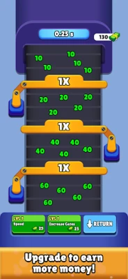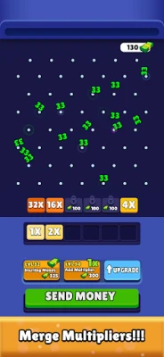 Player can merge the buttons to upgrade. When the falling numbers touch the buttons player can earn money and can upgrade the balls and buttons . Thus, it increases the income of the player.