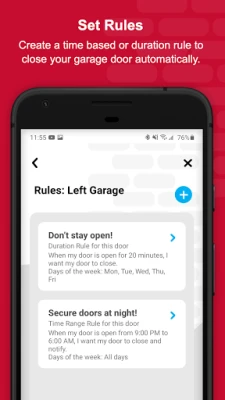 * Smartphone-enabled garage door controller includes a door control module plus a door position sensor (operates 1 door)