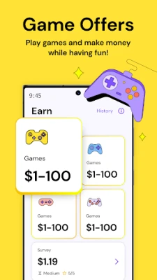 In addition to active tasks, you can also earn passively by securely sharing your unused internet. Just keep the app running in the background and let it generate earnings for you. Combine this feature with surveys and games to maximize your total income.