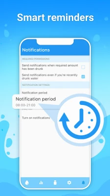 The app will automatically calculate how much water you in particular need to drink with consideration to your gender and weight, moreover it will make adjustments based on the weather conditions and your physical activities.