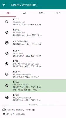Enroute supports essential flight planning. It allows you to quickly and easily compute distances, courses, and headings. It gives you an estimate for flight time and fuel consumption. If the weather turns bad, the app will show you the closest airfields for landing, complete with distances, directions, runway information, and frequencies.